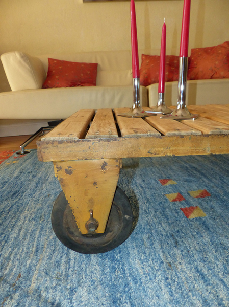 Schöner, alter Lohrenwagen, Gestell Metall, Platte Weichholz.