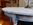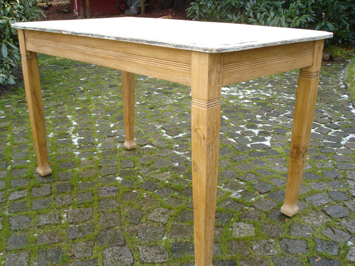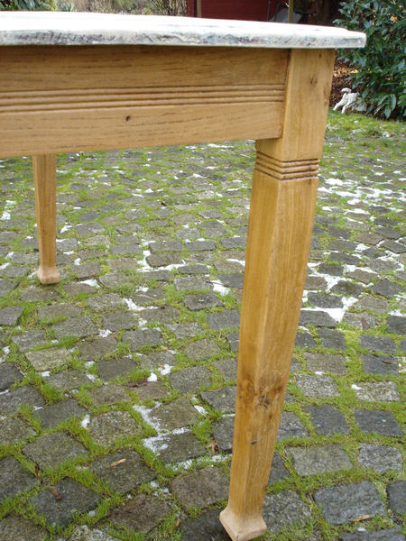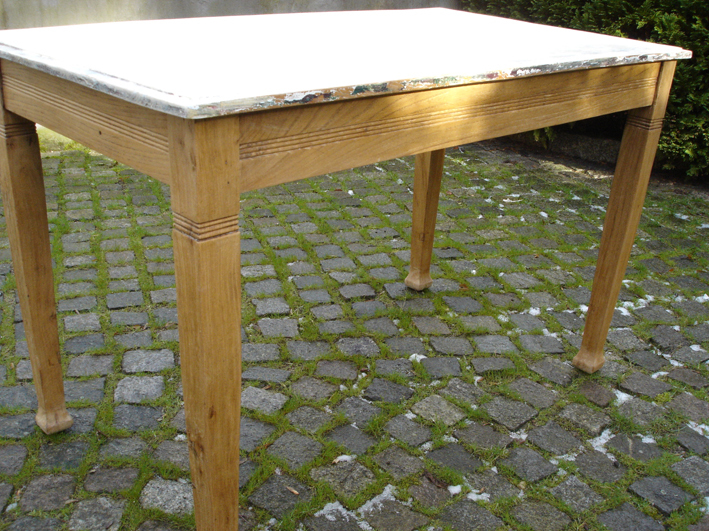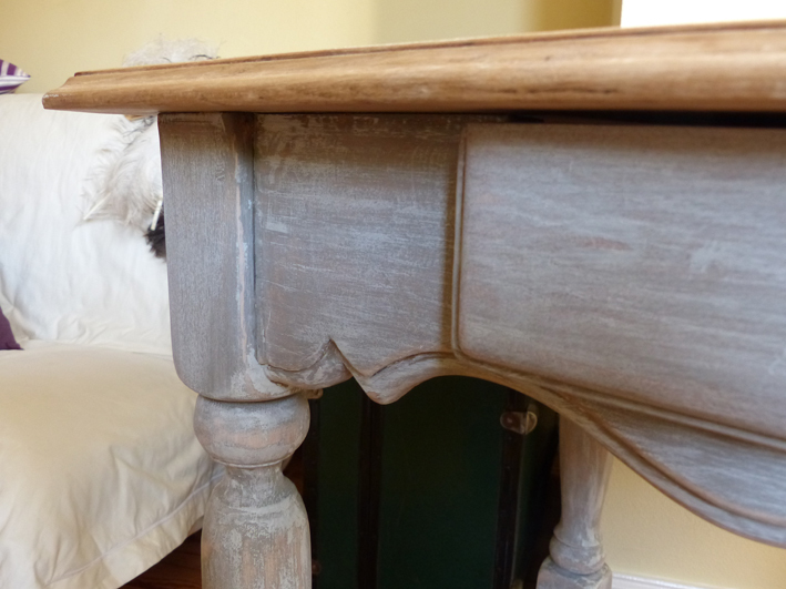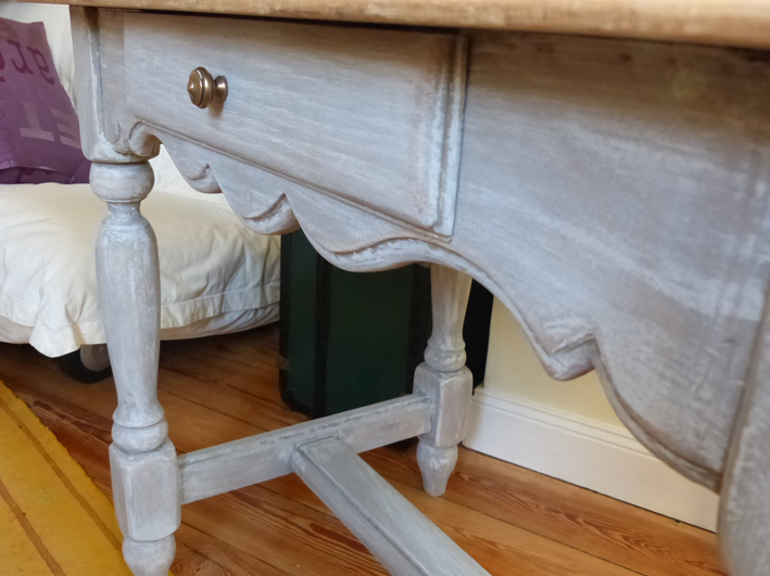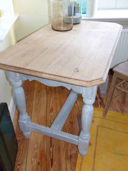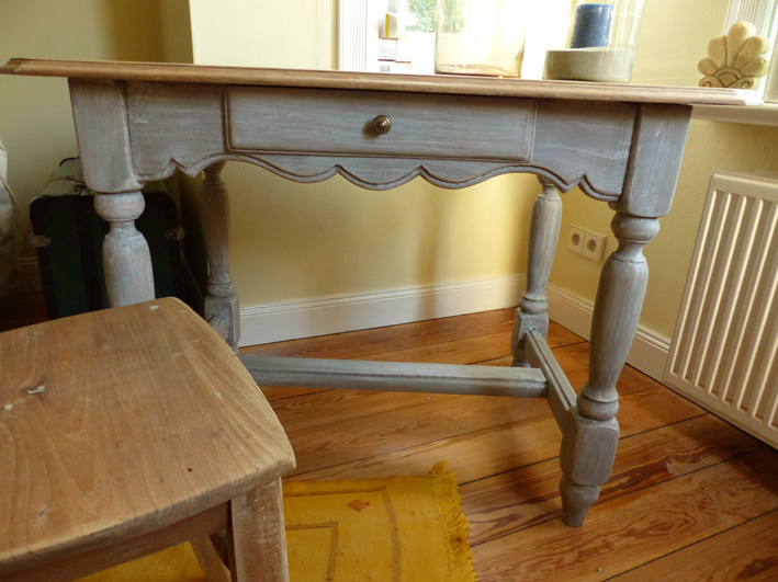 Tischplatte "natur", Korpus blau-grau gefasst.