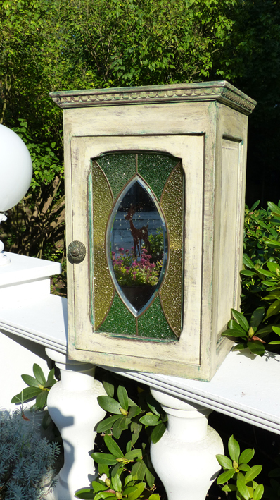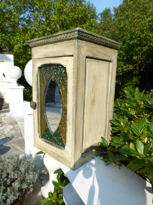 Kleiner Hängeschrank aus Weichholz mit sehr schöner,